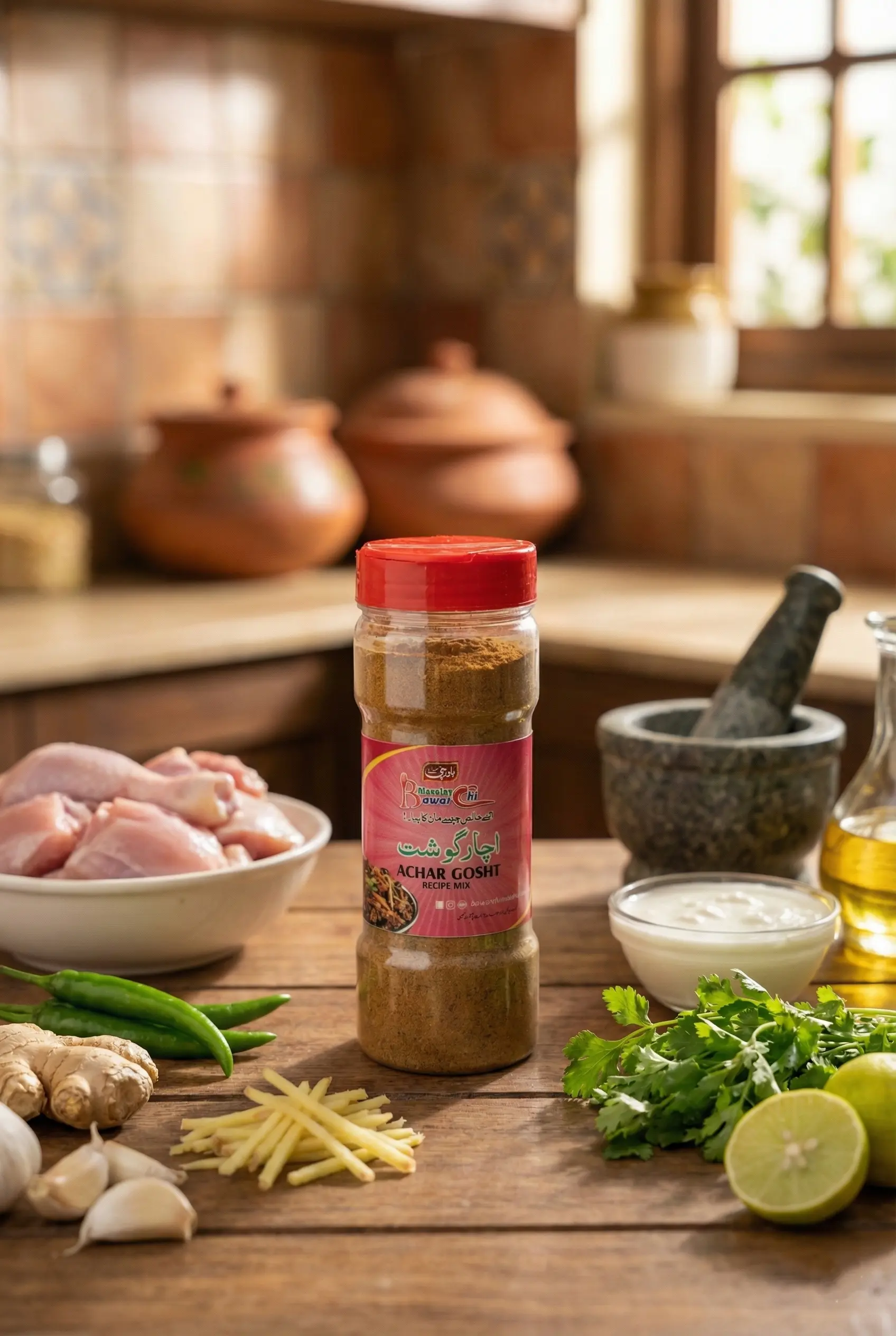 Bawarchi Achaar Gosht Masala brings the perfect “chatpata” twist to your meals. Crafted from the world’s purest and most aromatic spices, this blend delivers a tangy, spicy, and irresistible flavor that transforms every bite. Its lively mix of heat, zest, and rich aroma creates the true essence of traditional achar gosht—bold, vibrant, and full of character.